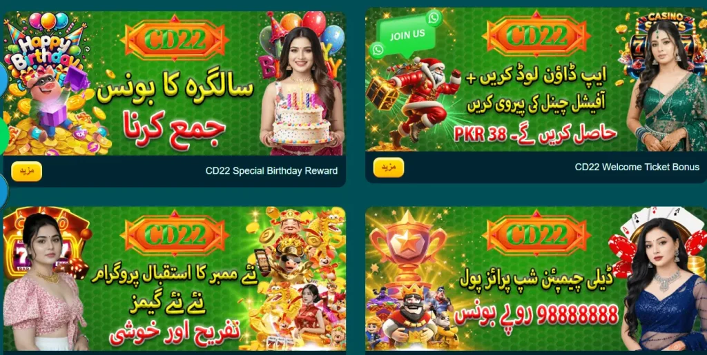 CD22 Game is trending in Pakistan due to its unique features. It has many games where you can win big money. You can withdraw your earnings through simple payment methods like Jazz Cash and Easy Paisa. The app provides a safe and secure space where you can enjoy games and withdraw your earnings without compromising on your security. The app offers 24/7 customer support, and it is frequently updated to give you the best casino experience. Download Cd22 Game APK now and jump into action.
